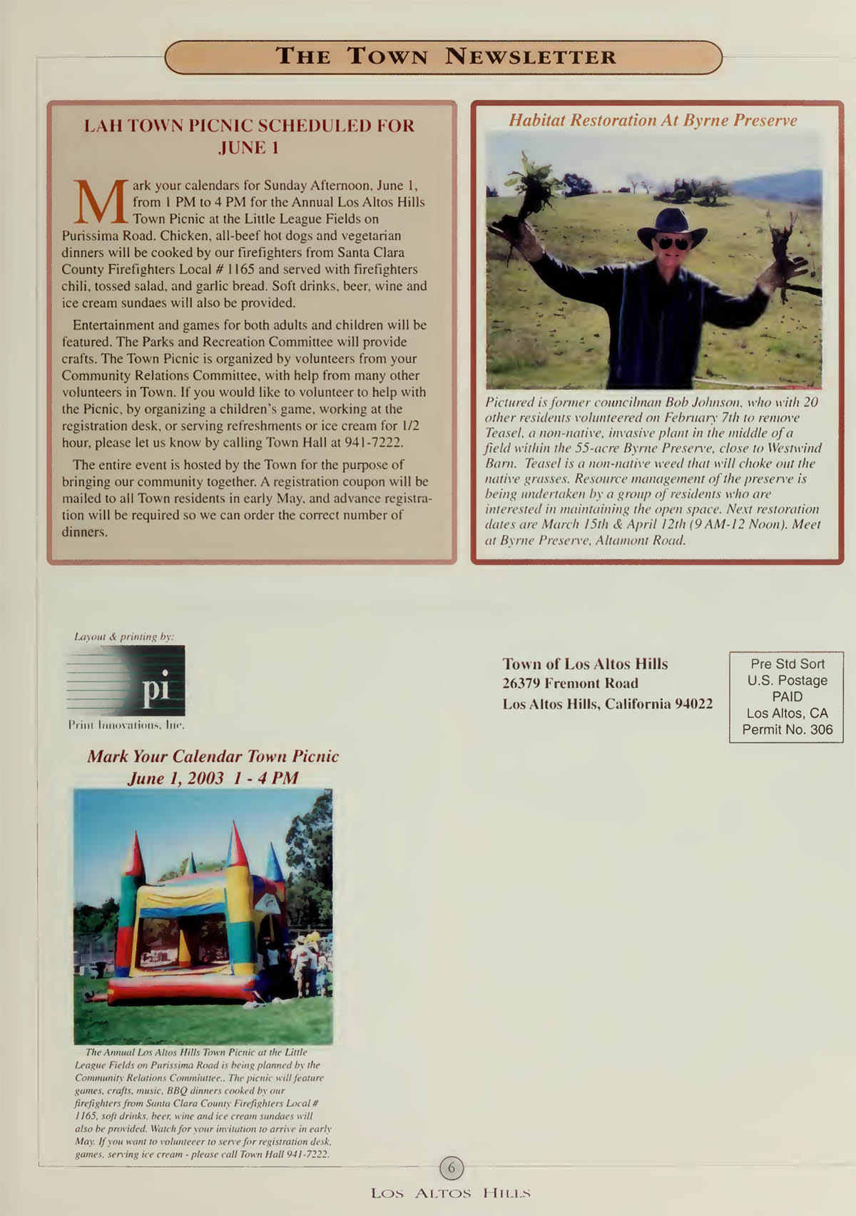 Town Picnic scheduled, Habitat Restoration at Byrne Preserve |