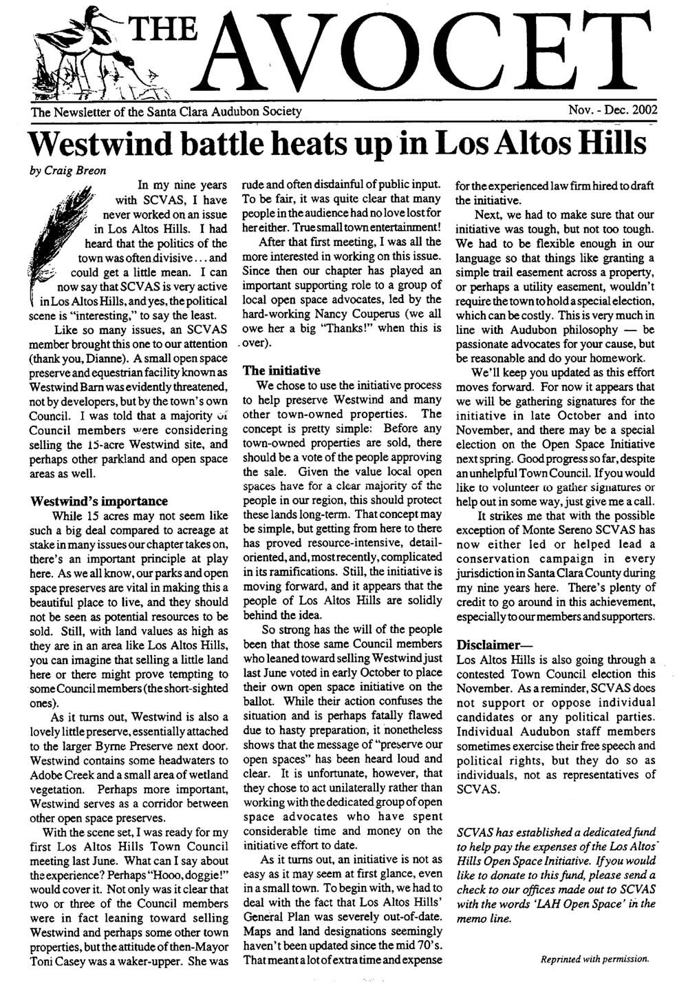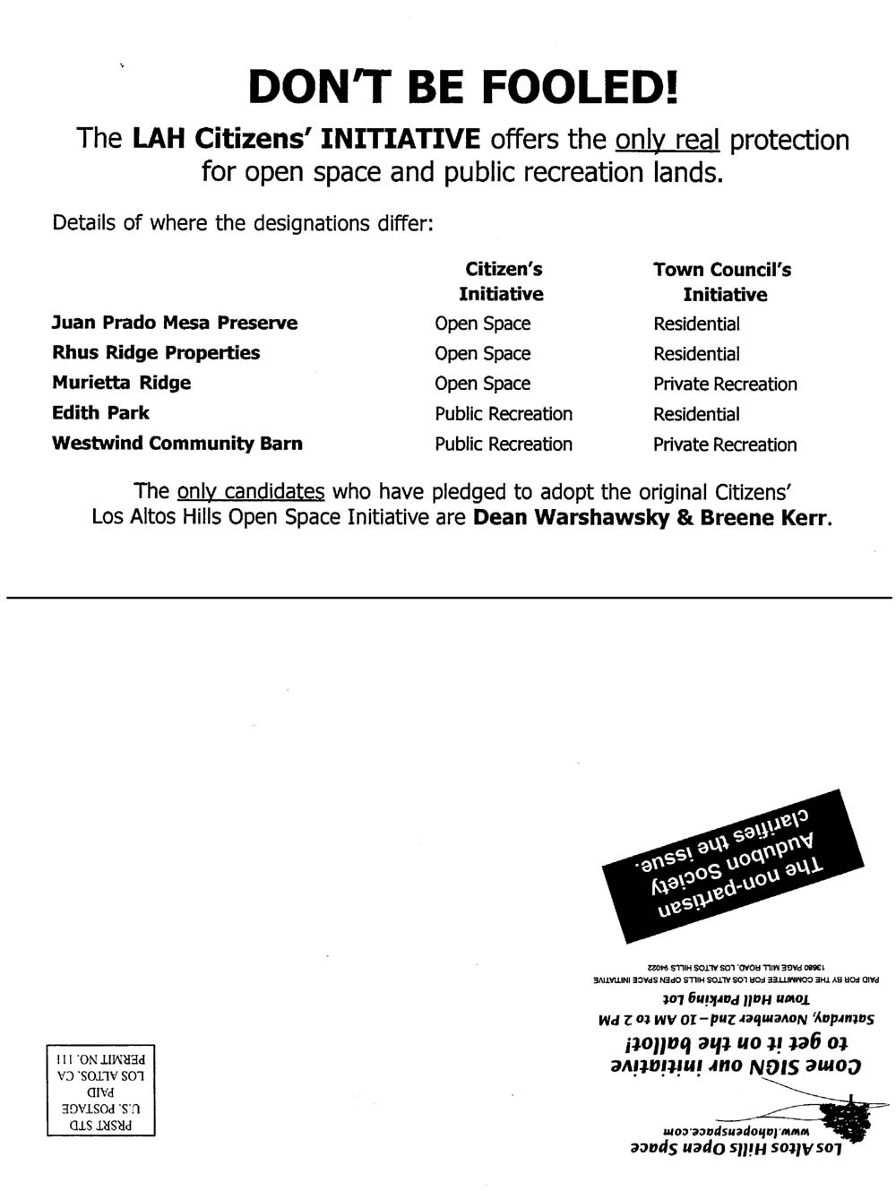 a better job of protecting the Town's Open Spaces - and divert votes from the Residents Initiative) the President of the local Audubon Society weighed in with an opinion piece on the front