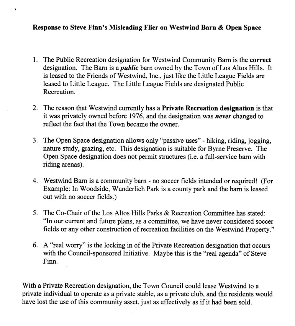 a better job of protecting the Town's Open Spaces - and divert votes from the Residents Initiative) one of the Council Members took it upon himself to publish a flyer
