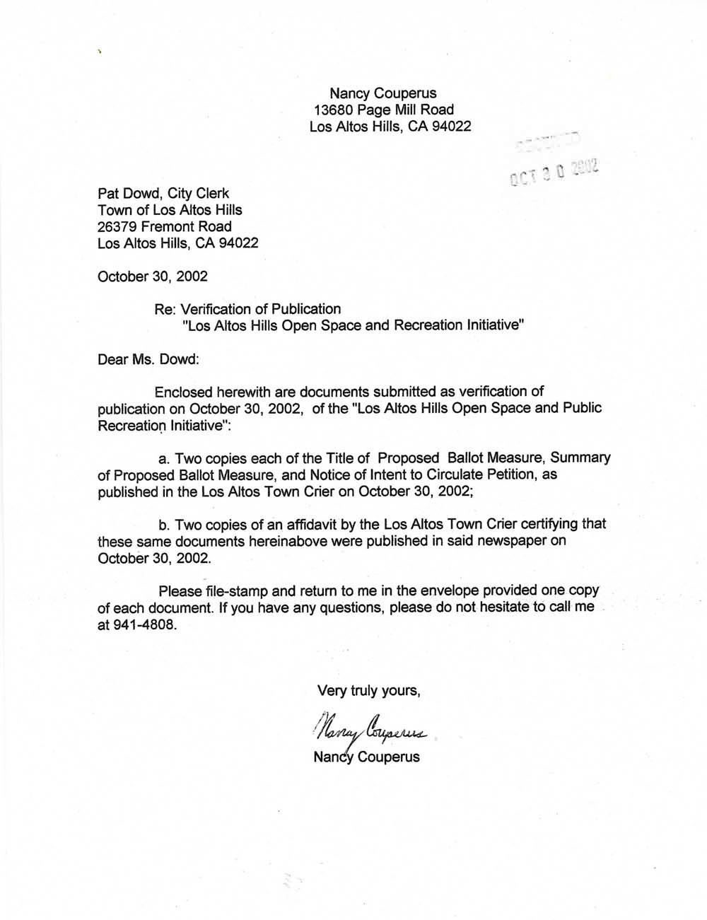 Official verification of publishing by The Town Crier of the "Title and Summary" of the Initiative