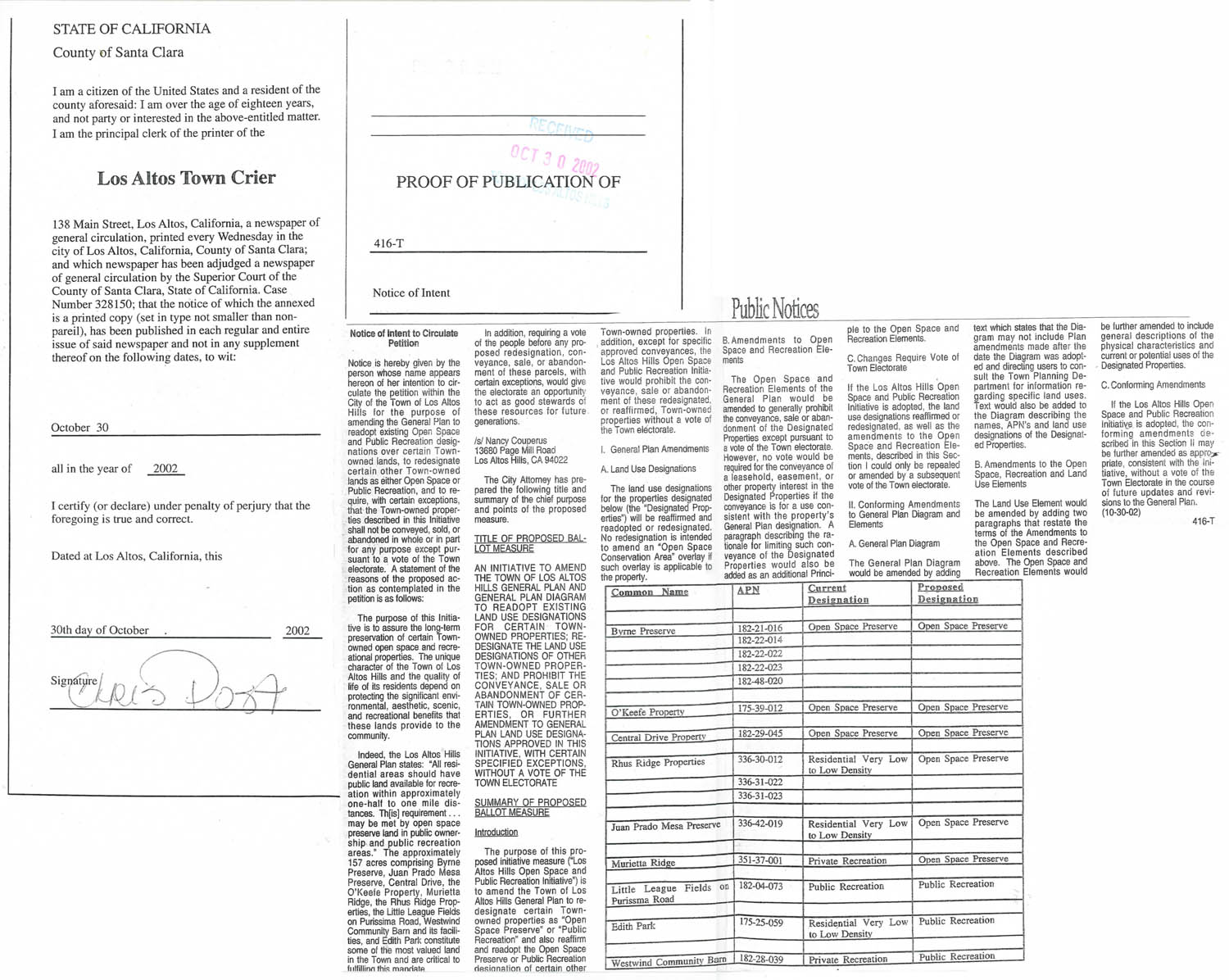 The Town Crier publishes the "Title and Summary" of the Initiative in its "Legal Advertisements" section and provides proof