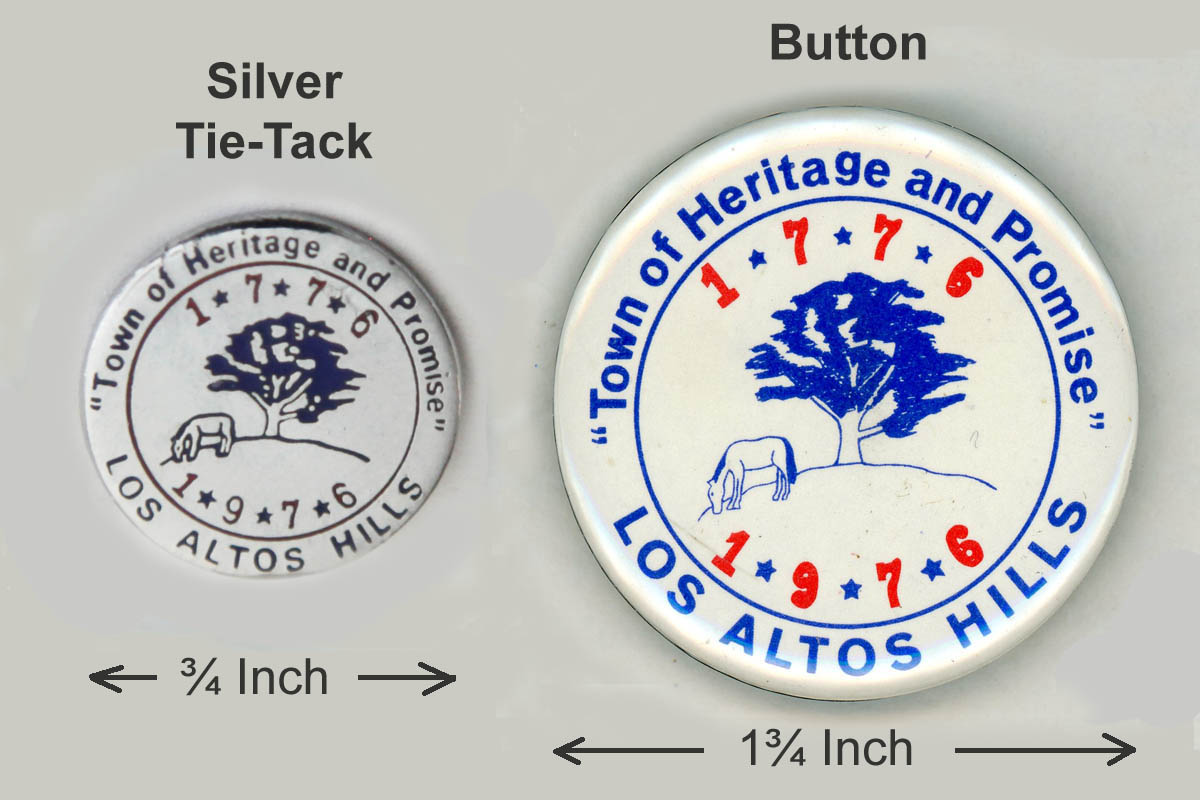 Two "pins" also created for the Centenary celebrations, shown at different scales, The tie-tack is silver-colored (chrome-plate?) while the button is of the usual inexpensive "political campaign button" variety.