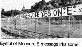 by Adobe Creek Lodge to display "Yes on E" signs more