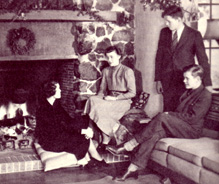 Hope, Elizabeth, Francis, and Bernard by the family fireplace