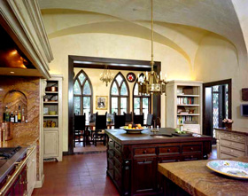 Beard revamped the kitchen to include a coved ceiling; the arches